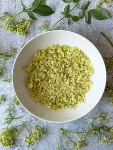 Yes, you can absolutely make this elderflower cordial recipe using dried flowers. The flavor will be slightly different (a bit more earthy) but still delicious. Since dried flowers are more concentrated, simply use 1/3 to half the amount (e.g 1/3 to 1/2 cup of dried elderflowers to 1 cup fresh).